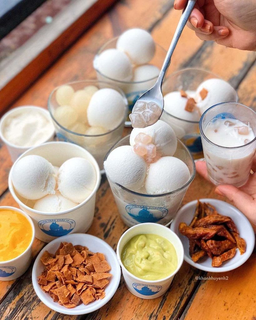 Sau một ngày tham quan, không gì dễ chịu bằng một cốc sữa chua trân châu mát lạnh. Trân châu dẻo, sữa chua mịn, ngọt vừa, rất phù hợp với thời tiết biển.