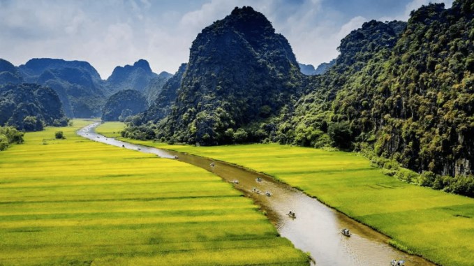 - Tam Cốc – “Vịnh Hạ Long trên cạn”: Hành trình thuyền trên sông Ngô Đồng là trải nghiệm khó quên khi du khách có thể ngưỡng những cánh đồng lúa ven sông, len kiệt qua ba hang động tự nhiên tuyệt đẹp: Hàng Cả, Hàng Hải, Hàng Ba.