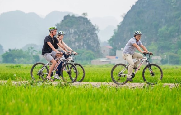 - 14h30: Quý khách sẽ được trải nghiệm trải nghiệm hoạt động đi xe đạp, được đồng hành trên những chuyến xe đi qua từng cánh đồng lúa và cảm nhận bầu không khí trong lành từ thiên nhiên.